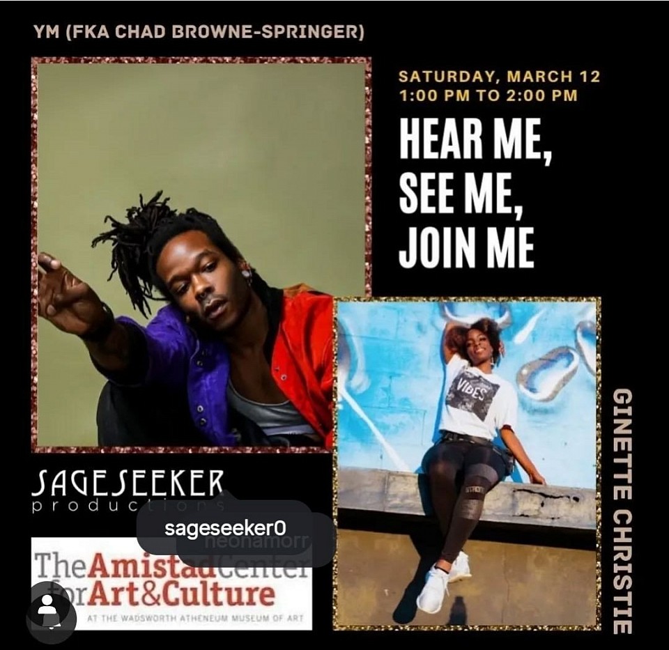 Sage Seeker Event at The Amistad Display in The Wadsworth Atheneum. Music performed by: Ym, Dance Performed by Ginette Christie